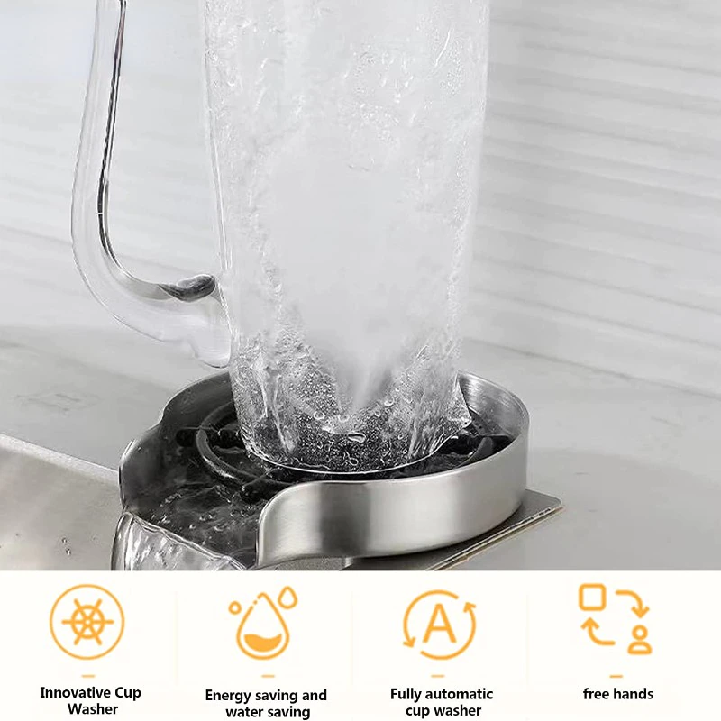 ماكينة تنظيف الاكواب الزجاج من ويمارت، اداة غسل الاكواب والزجاجات لحوض المطبخ، شطف سريع لزجاجة الاطفال، جهاز تنظيف آلي لحوض المطبخ مع قاعدة ومحول وخرطوم – جهاز غسيل الأكواب السحري